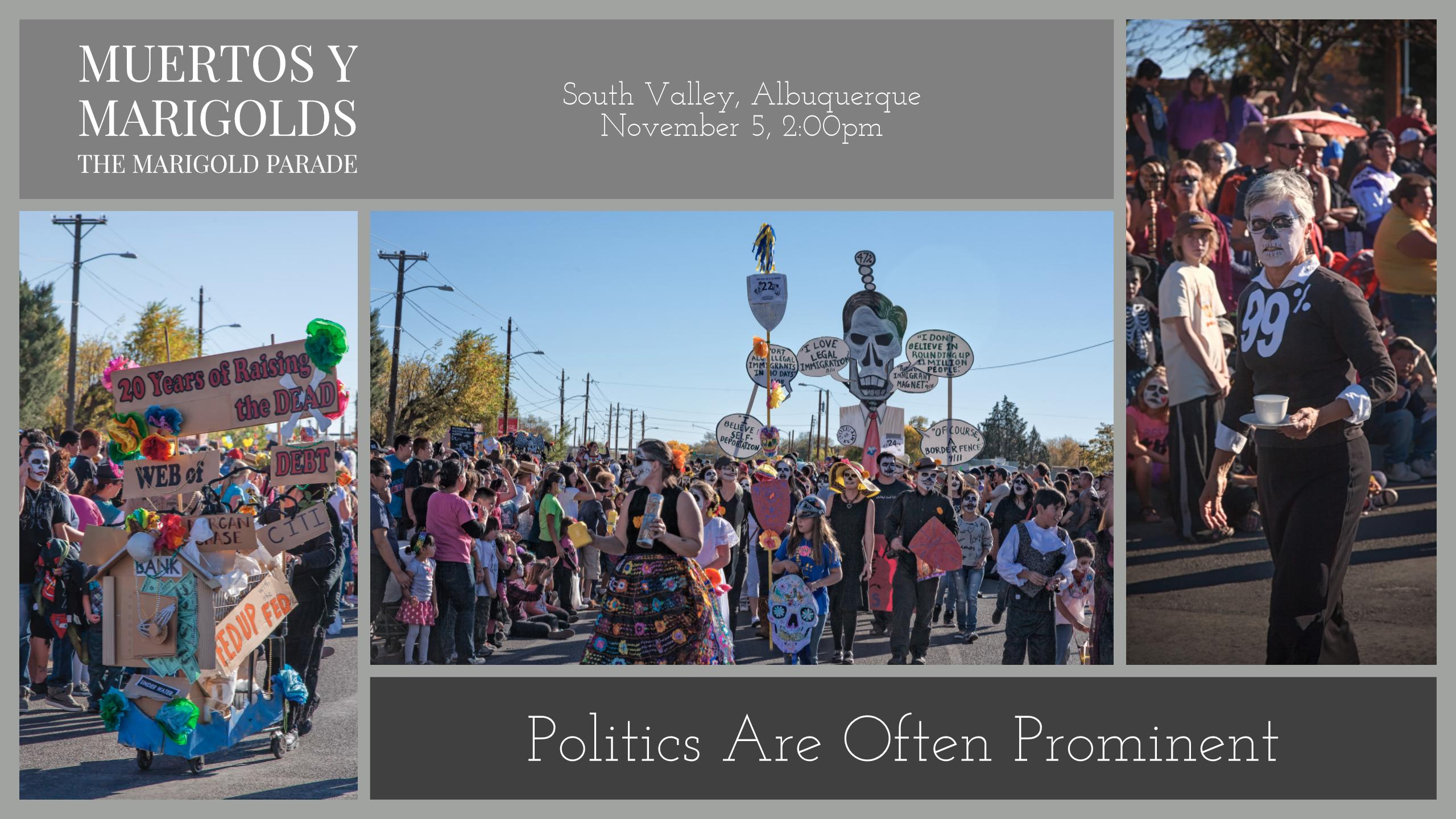 I did a series of Kindle ebooks about Albuquerque’s Marigold Parade and Dia de los Muertos obsrvances. These are at Amazon: