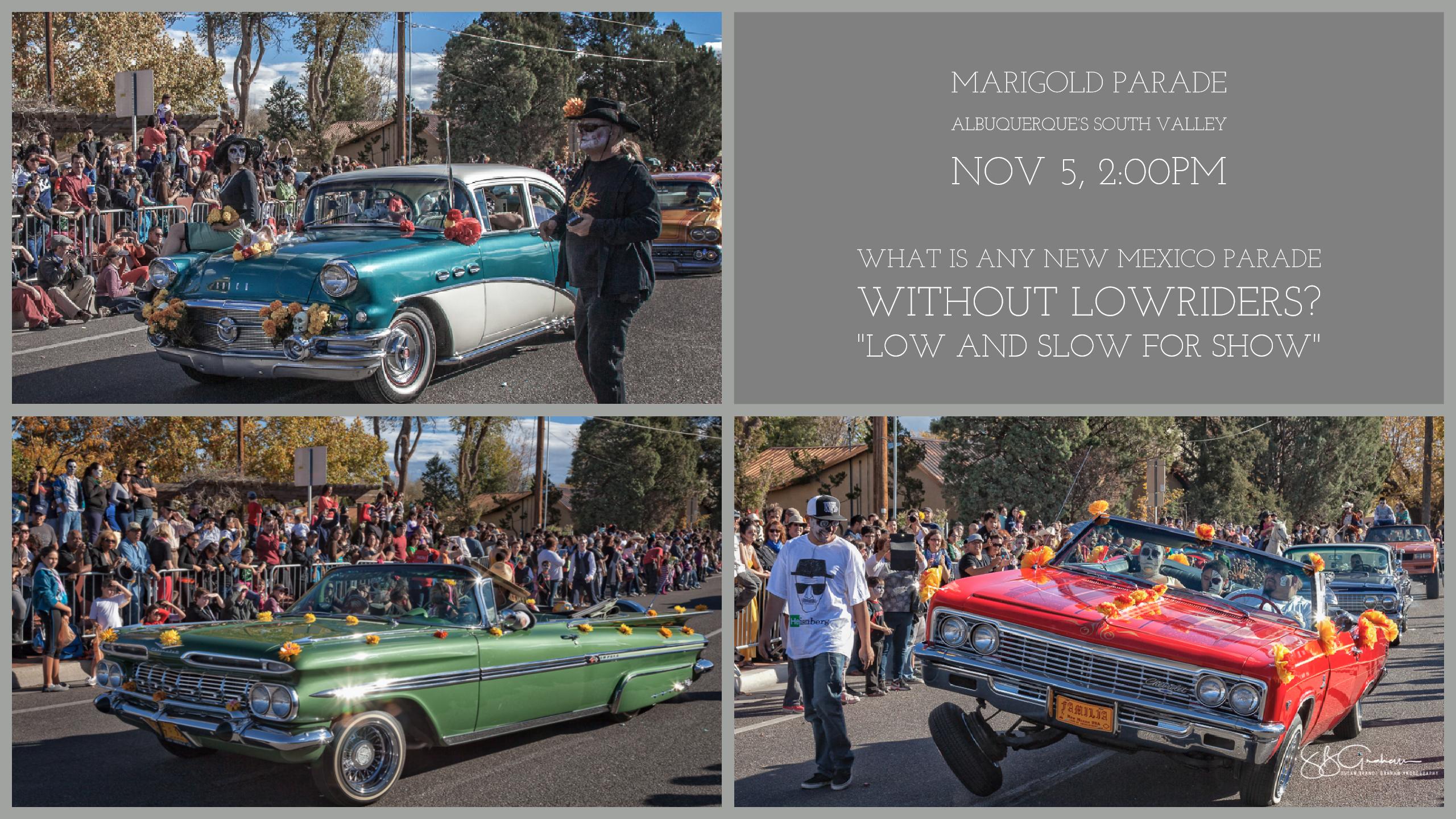 I think every New Mexico parade has lowriders – “low and slow for show.” The Marigold Parade certainly features them.